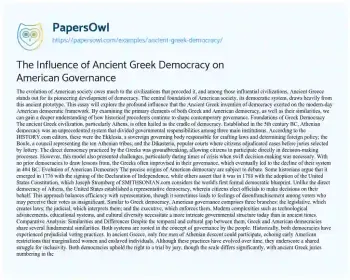 The Influence of Ancient Greek Democracy on American Governance. (2019, May 10). Retrieved from https://hub.papersowl.com/examples/ancient-greek-democracy/