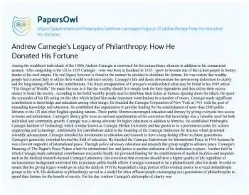 Andrew Carnegie's Legacy of Philanthropy: How He Donated His Fortune. (2024, Jul 06). Retrieved from https://hub.papersowl.com/examples/andrew-carnegies-legacy-of-philanthropy-how-he-donated-his-fortune/