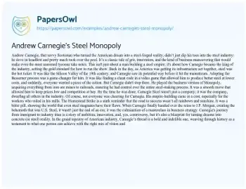 Andrew Carnegie's Steel Monopoly. (2024, Apr 14). Retrieved from https://hub.papersowl.com/examples/andrew-carnegies-steel-monopoly/