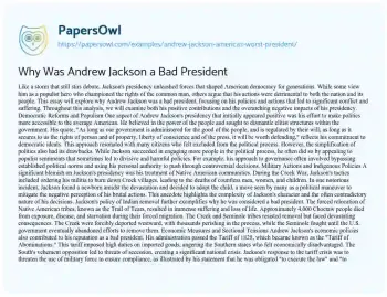 Why Was Andrew Jackson a Bad President. (2021, Jul 05). Retrieved from https://hub.papersowl.com/examples/andrew-jackson-americas-worst-president/
