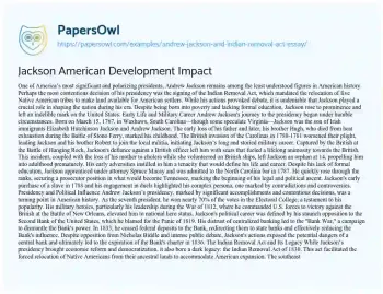 Jackson American Development Impact. (2021, May 14). Retrieved from https://hub.papersowl.com/examples/andrew-jackson-and-indian-removal-act-essay/
