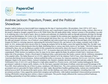 Andrew Jackson: Populism, Power, and the Political Showdown. (2024, Jun 17). Retrieved from https://hub.papersowl.com/examples/andrew-jackson-populism-power-and-the-political-showdown/