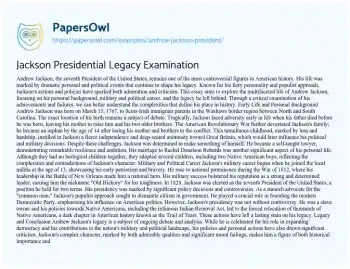 Jackson Presidential Legacy Examination. (2019, May 27). Retrieved from https://hub.papersowl.com/examples/andrew-jackson-president/