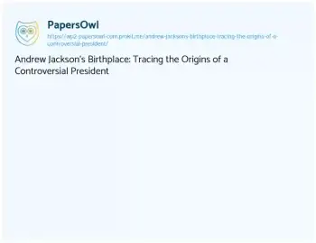 Andrew Jackson's Birthplace: Tracing the Origins of a Controversial President. (2024, Jun 17). Retrieved from https://hub.papersowl.com/examples/andrew-jacksons-birthplace-tracing-the-origins-of-a-controversial-president/