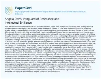 Angela Davis: Vanguard of Resistance and Intellectual Brilliance. (2024, Feb 20). Retrieved from https://hub.papersowl.com/examples/angela-davis-vanguard-of-resistance-and-intellectual-brilliance/