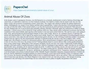Animal Abuse Of Zoos. (2024, Apr 07). Retrieved from https://hub.papersowl.com/examples/animal-abuse-of-zoos/