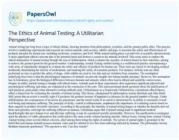 The Ethics of Animal Testing: A Utilitarian Perspective. (2019, Apr 09). Retrieved from https://hub.papersowl.com/examples/animal-rights-and-society/