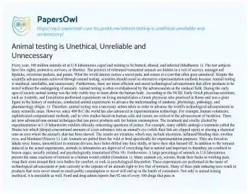 Animal testing is Unethical, Unreliable and Unnecessary. (2019, Jan 04). Retrieved from https://hub.papersowl.com/examples/animal-testing-is-unethical-unreliable-and-unnecessary/