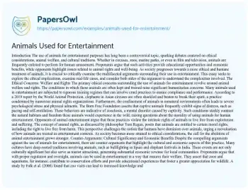 Animals Used for Entertainment. (2024, Dec 27). Retrieved from https://hub.papersowl.com/examples/animals-used-for-entertainment/