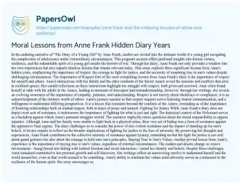 Moral Lessons from Anne Frank Hidden Diary Years. (2023, Aug 16). Retrieved from https://hub.papersowl.com/examples/anne-frank-and-the-enduring-lessons-of-virtue-and-resilience/
