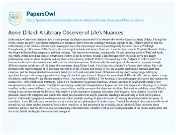 Annie Dillard: A Literary Observer of Life's Nuances. (2023, Dec 04). Retrieved from https://hub.papersowl.com/examples/annie-dillard-a-literary-observer-of-lifes-nuances/