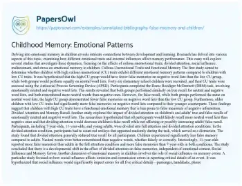 Childhood Memory: Emotional Patterns. (2021, May 14). Retrieved from https://hub.papersowl.com/examples/annotated-bibliography-false-memory-and-children/