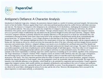 Through a detailed analysis, this essay will argue that Antigone's character serves as a powerful critique of authoritarian rule and underscores the perennial struggle for justice and moral autonomy.