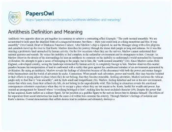 This essay will define and explain the literary device of antithesis. It will discuss how antithesis is used to create contrast and emphasis in literature, providing examples from well-known works to illustrate its effect and significance in rhetoric and composition. Additionally, PapersOwl presents more free essays samples linked to Heart Of Darkness.