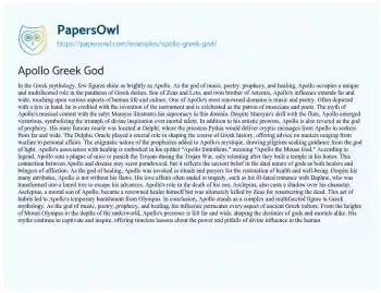 Apollo Greek God. (2024, Apr 29). Retrieved from https://hub.papersowl.com/examples/apollo-greek-god/