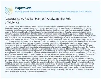 Appearance vs Reality “Hamlet”: Analyzing the Role of Violence