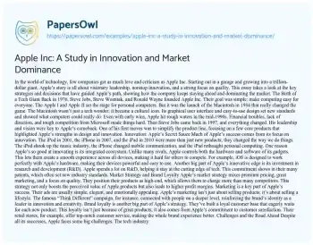 Apple Inc: A Study in Innovation and Market Dominance. (2024, Sep 17). Retrieved from https://hub.papersowl.com/examples/apple-inc-a-study-in-innovation-and-market-dominance/