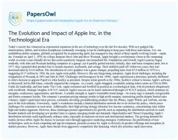 The Evolution and Impact of Apple Inc. in the Technological Era. (2021, Mar 10). Retrieved from https://hub.papersowl.com/examples/apple-inc-in-business-history/
