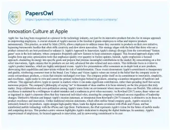 Innovation Culture at Apple. (2020, Nov 03). Retrieved from https://hub.papersowl.com/examples/apple-most-innovative-company/