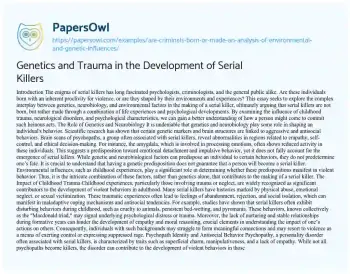 Genetics and Trauma in the Development of Serial Killers. (2023, Aug 15). Retrieved from https://hub.papersowl.com/examples/are-criminals-born-or-made-an-analysis-of-environmental-and-genetic-influences/