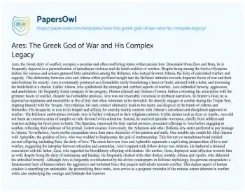 Ares: The Greek God of War and His Complex Legacy. (2024, May 12). Retrieved from https://hub.papersowl.com/examples/ares-the-greek-god-of-war-and-his-complex-legacy/