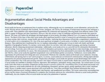 Argumentative about Social Media Advantages and Disadvantages. (2025, Mar 28). Retrieved from https://hub.papersowl.com/examples/argumentative-about-social-media-advantages-and-disadvantages/