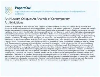 Art Museum Critique: An Analysis of Contemporary Art Exhibitions. (2024, Sep 17). Retrieved from https://hub.papersowl.com/examples/art-museum-critique-an-analysis-of-contemporary-art-exhibitions/