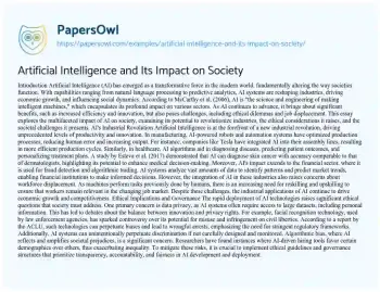 Artificial Intelligence and Its Impact on Society. (2024, Dec 27). Retrieved from https://hub.papersowl.com/examples/artificial-intelligence-and-its-impact-on-society/