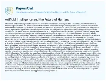 This essay examines the potential impact of AI on the future of humans, addressing both its beneficial aspects and the challenges it presents. Through an analysis of current applications and future projections, the essay aims to provide a nuanced understanding of AI's role in shaping the human experience.