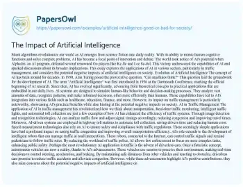 Silent algorithms revolutionize our world as AI emerges from science fiction into daily reality. With its ability to mimic human cognitive functions and solve complex problems, AI has become a focal point of innovation and debate. The world took notice of AI's potential when AlphaGo, an AI program, defeated several renowned Go players like Ke Jie and Lee Se-dol. This victory underscored the capabilities of AI and sparked discussions about its broader implications. This essay explores the applications of AI in various sectors, particularly in traffic management, and considers the potential negative impacts of artificial intelligence on society.