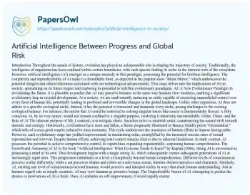 Artificial Intelligence Between Progress and Global Risk. (2020, Mar 21). Retrieved from https://hub.papersowl.com/examples/artificial-intelligence-in-society/