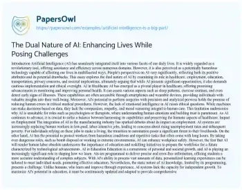 The Dual Nature of AI: Enhancing Lives While Posing Challenges. (2020, Apr 10). Retrieved from https://hub.papersowl.com/examples/artificial-intelligence-is-a-big-part/