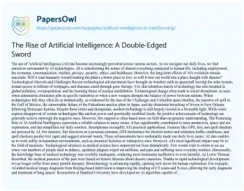 The Rise of Artificial Intelligence: A Double-Edged Sword. (2019, Jan 27). Retrieved from https://hub.papersowl.com/examples/artificial-intelligence-is-transforming/