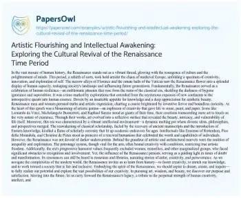 Artistic Flourishing and Intellectual Awakening: Exploring the Cultural Revival of the Renaissance Time Period. (2024, May 12). Retrieved from https://hub.papersowl.com/examples/artistic-flourishing-and-intellectual-awakening-exploring-the-cultural-revival-of-the-renaissance-time-period/