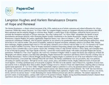 Langston Hughes and Harlem Renaissance Dreams of Hope and Renewal