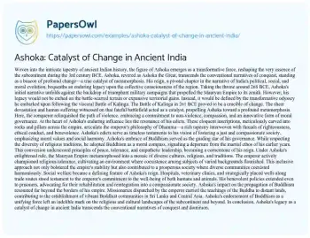 Ashoka: Catalyst of Change in Ancient India. (2024, Mar 12). Retrieved from https://hub.papersowl.com/examples/ashoka-catalyst-of-change-in-ancient-india/