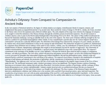Ashoka's Odyssey: From Conquest to Compassion in Ancient India. (2024, Feb 20). Retrieved from https://hub.papersowl.com/examples/ashokas-odyssey-from-conquest-to-compassion-in-ancient-india/