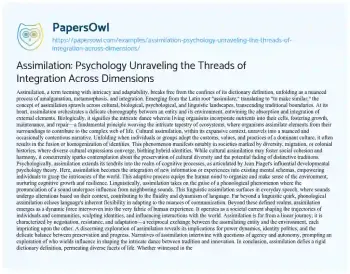 Assimilation: Psychology Unraveling the Threads of Integration Across Dimensions