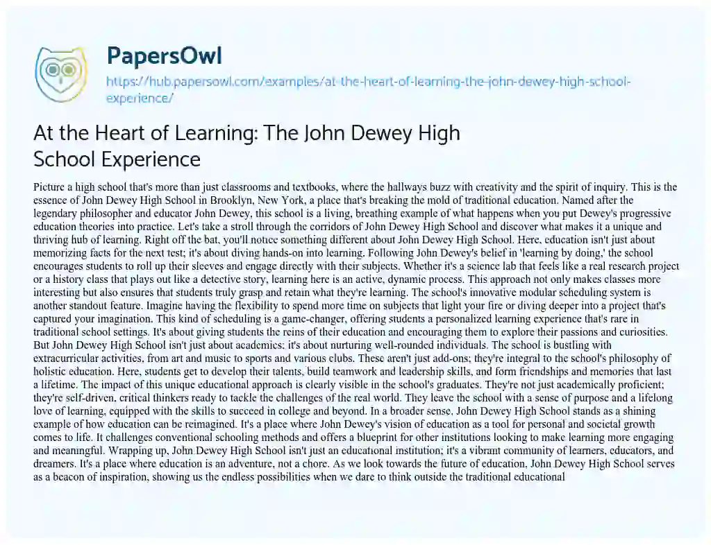At the Heart of Learning: The John Dewey High School Experience. (2023, Dec 01). Retrieved from https://hub.papersowl.com/examples/at-the-heart-of-learning-the-john-dewey-high-school-experience/