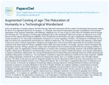 Augmented Coming of age: The Maturation of Humanity in a Technological Wonderland. (2024, Mar 01). Retrieved from https://hub.papersowl.com/examples/augmented-coming-of-age-the-maturation-of-humanity-in-a-technological-wonderland/