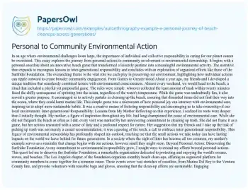 Personal to Community Environmental Action. (2023, Aug 28). Retrieved from https://hub.papersowl.com/examples/autoethnography-example-a-personal-journey-of-beach-cleanups-across-generations/