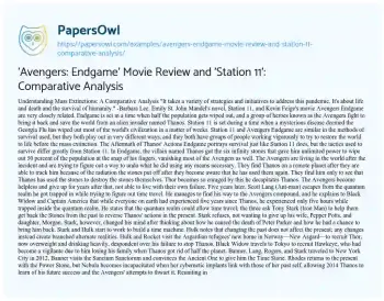 'Avengers: Endgame' Movie Review and 'Station 11': Comparative Analysis. (2023, Aug 16). Retrieved from https://hub.papersowl.com/examples/avengers-endgame-movie-review-and-station-11-comparative-analysis/