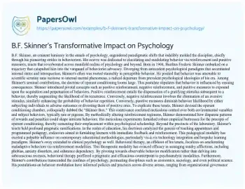 B.F. Skinner's Transformative Impact on Psychology. (2024, May 28). Retrieved from https://hub.papersowl.com/examples/b-f-skinners-transformative-impact-on-psychology/