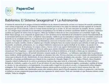 Babilonios: El Sistema Sexagesimal Y La Astronomía. (2026, Feb 06). Retrieved from https://hub.papersowl.com/examples/babilonios-el-sistema-sexagesimal-y-la-astronomia/