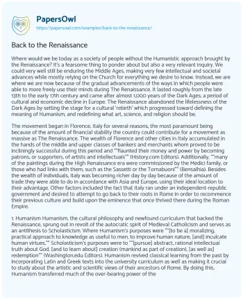 Back to the Renaissance. (2019, Mar 25). Retrieved from https://hub.papersowl.com/examples/back-to-the-renaissance/