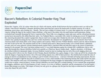 Bacon's Rebellion: A Colonial Powder Keg That Exploded. (2023, Nov 24). Retrieved from https://hub.papersowl.com/examples/bacons-rebellion-a-colonial-powder-keg-that-exploded/