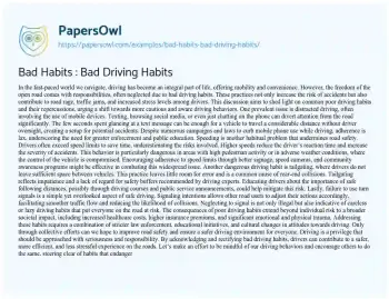 Bad Habits : Bad Driving Habits. (2024, Apr 22). Retrieved from https://hub.papersowl.com/examples/bad-habits-bad-driving-habits/