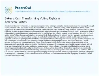 Baker v. Carr: Transforming Voting Rights in American Politics. (2024, Jul 06). Retrieved from https://hub.papersowl.com/examples/baker-v-carr-transforming-voting-rights-in-american-politics/