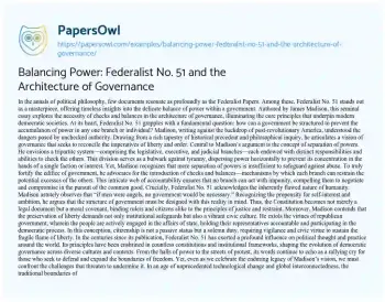 Balancing Power: Federalist No. 51 and the Architecture of Governance. (2024, Jun 01). Retrieved from https://hub.papersowl.com/examples/balancing-power-federalist-no-51-and-the-architecture-of-governance/