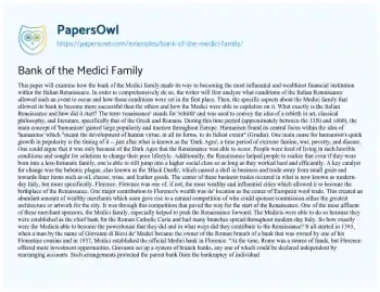 Bank of the Medici Family. (2021, Apr 19). Retrieved from https://hub.papersowl.com/examples/bank-of-the-medici-family/
